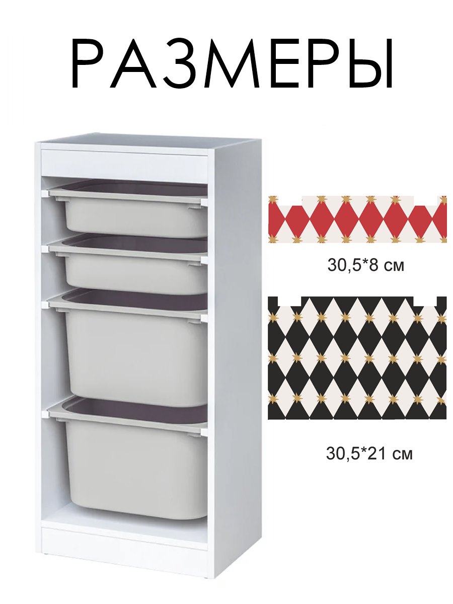 Преобразите детскую комнату за пару минут с помощью стильных наклеек для ящиков игрушек, как из Pinterest, созданных специально под размеры контейнеров Труфаст. Они помогают поддерживать порядок, делают систему хранения наглядной для ребёнка и становятся ярким акцентом в интерьере.